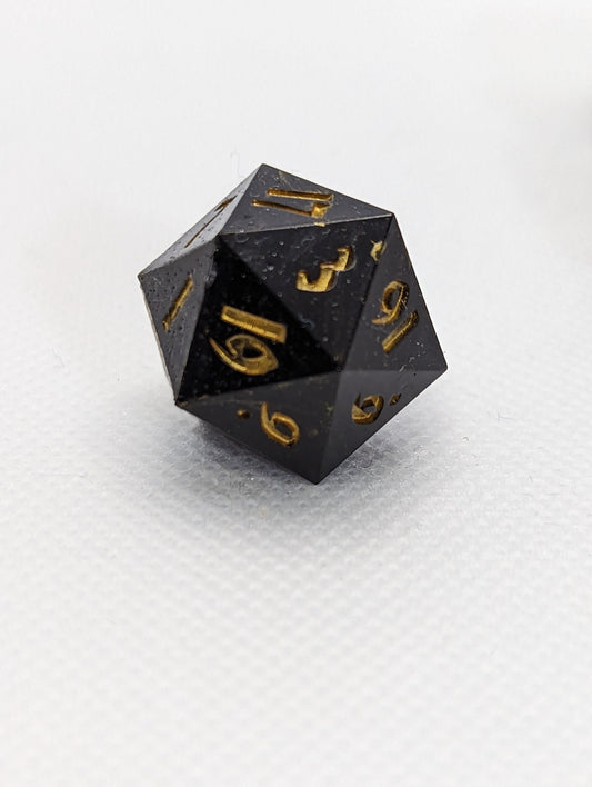 Hand made Dice Set - Black & Gold (Calligraphy Font)