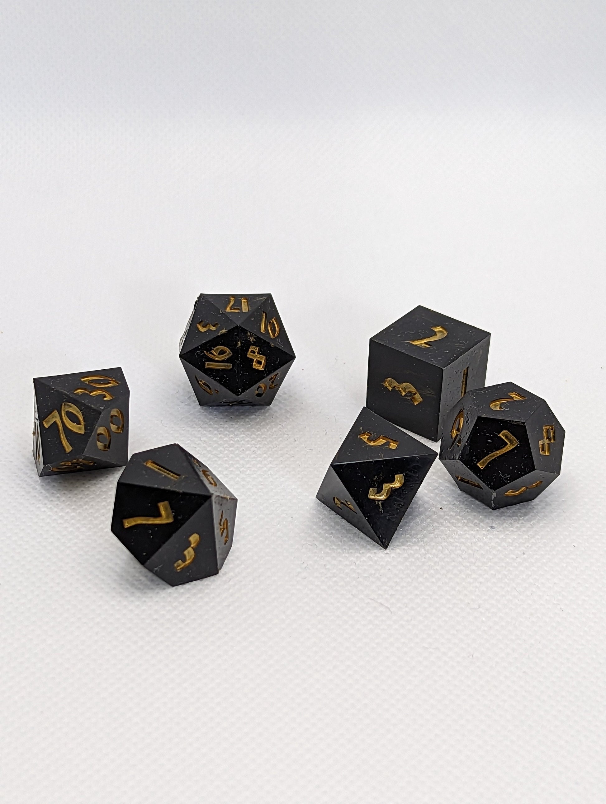 Hand made Dice Set - Black & Gold (Calligraphy Font)